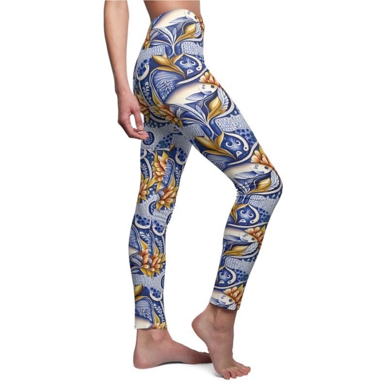 Delft blue dutch flowery herring design – Women’s Cut & Sew Casual Leggings (AOP)